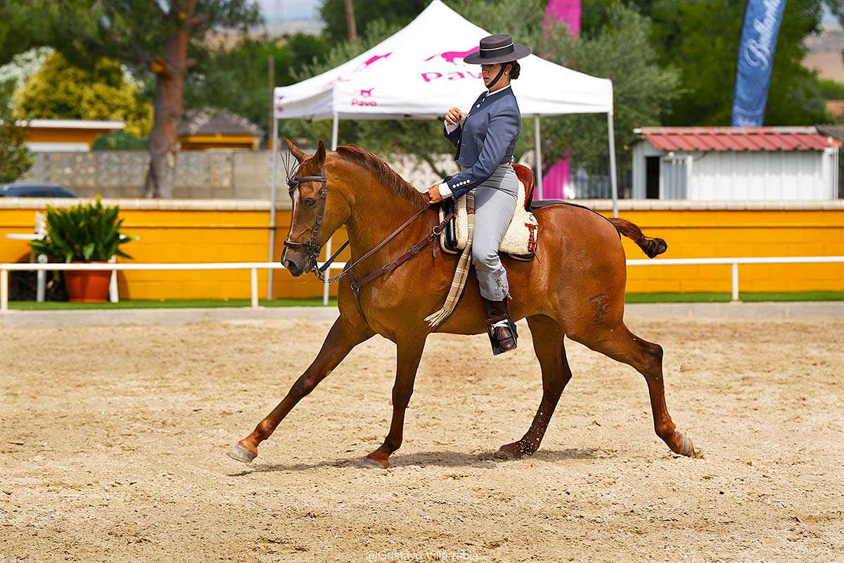 Con la elegante vestimenta tradicional y el sombrero de ala ancha de este tipo de monta, jinetes y amazonas salieron a la pista al toque de la campana del presidente de la prueba. Momento en que el público hace silencio para observar y disfrutar de los ejercicios del Binomio, al ritmo de la música flamenca establecida por reglamento en esta disciplina.