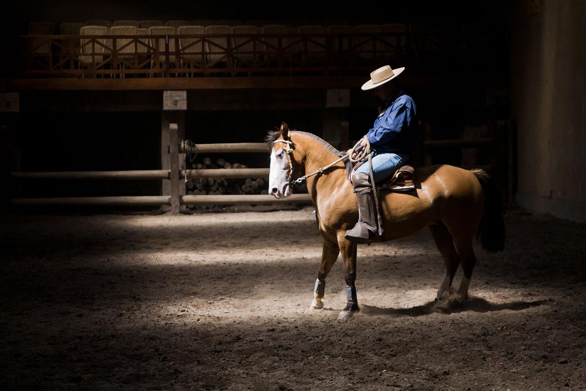 Esta es una de mis fotos favoritas, de hecho, la tengo ampliada en uno de los muros de mi casa. La realicé mientras presenciaba al Jinete y preparador de caballos Rodrigo Cardemil, como pacientemente va enseñando al caballo a salir con la pata de la dirección que toma. Es decir, si va a girar a la izquierda el animal debe salir con la pata izquierda, para evitar así que el caballo tropiece y se caiga, o se haga daño en sus manos. Una habilidad primaria y muy necesaria para la práctica del Rodeo a la chilena. Cuando la difunta Reina Isabel II de Inglaterra, que conocía de estos dotes de los caballos chilenos, supo que la escuadra Ecuestre de Peñaflor se encontraba haciendo espectáculos en Europa, pidió poder asistir a una presentación privada, y así se le concedió, en el cierre del cumpleaños número 90 de la Reina (QEPD) en el Royal Windsor Horse Show en 2016. Video